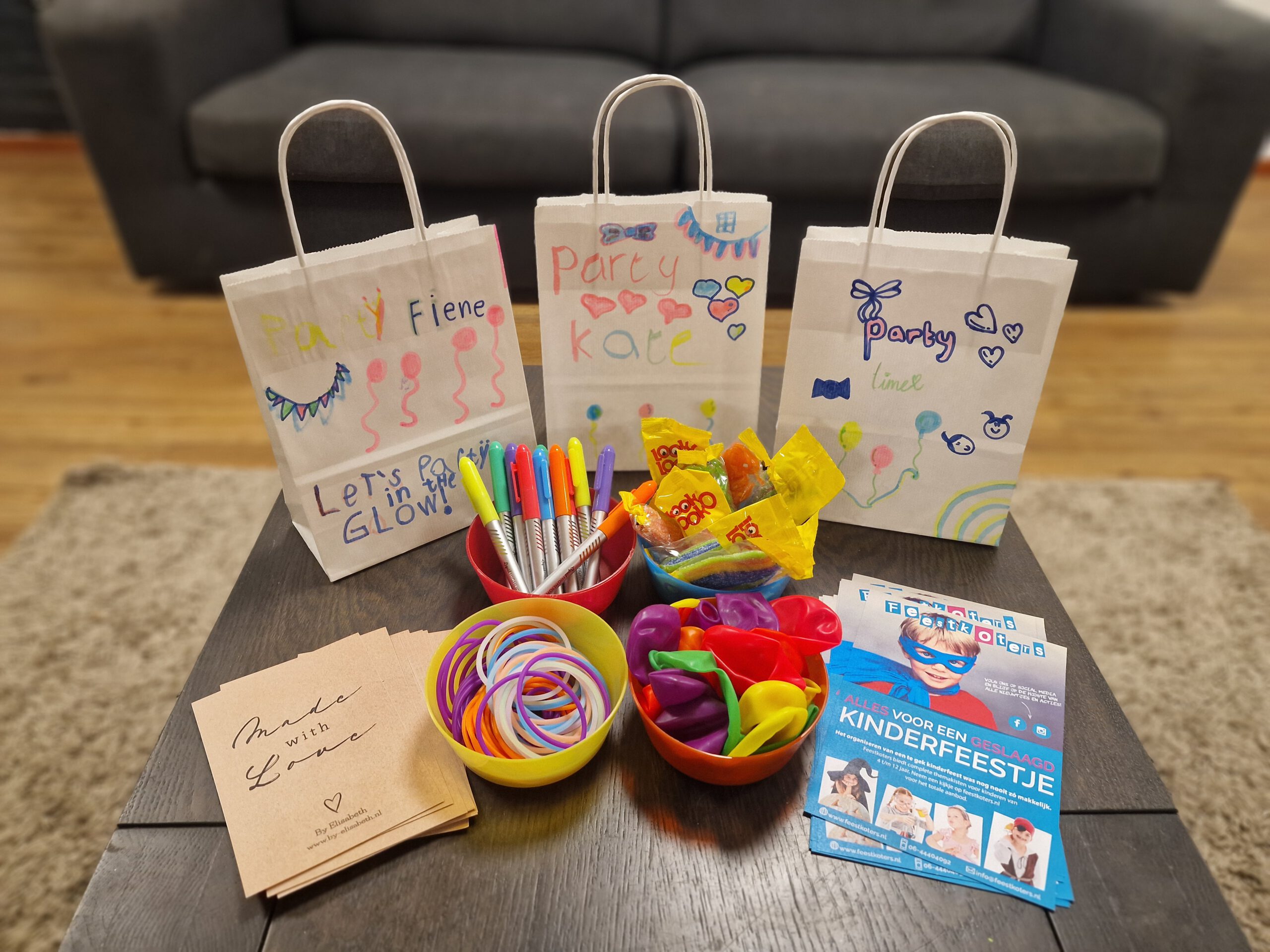 Wil je als extra activiteit ook Goodie Bags laten versieren en vullen? Boek deze dan bij via de ‘Extra’s’ op onze website. Dan ontvang je witte papieren tasjes, fluorescerende stiften en allerlei leuke hebbedingetjes om erin te doen, zodat iedere feestganger met een leuk aandenken aan het feest naar huis gaat.